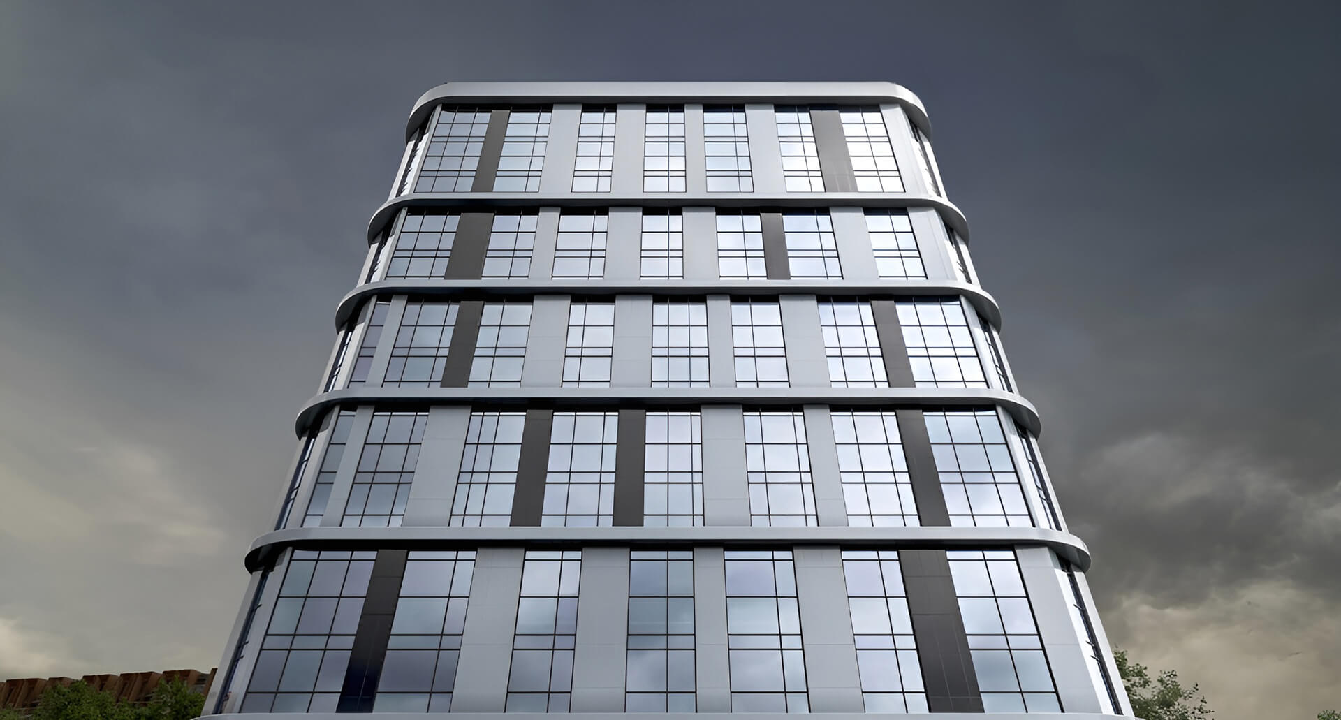 Здание Life Apart Октябрьская возводится по монолитно-каркасной технологии с использованием навесного фасада из керамогранита. Такой подход обеспечивает долговечность, энергоэффективность и современный внешний облик здания.
