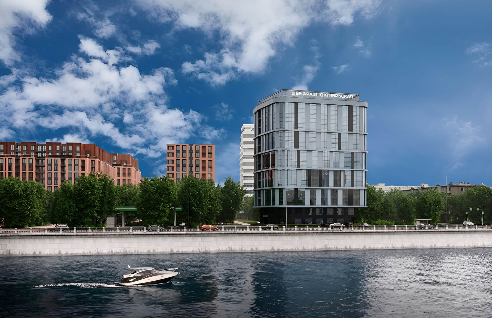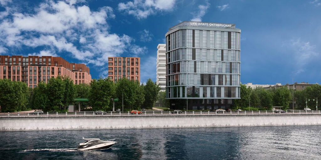 «Life Apart Октябрьская» — современный апарт-отель бизнес-класса на Октябрьской набережной Санкт-Петербурга. Уникальность проекта заключается в его расположении на первой линии Невы, что обеспечивает панорамные виды на воду и город. Архитектура выполнена в монолитно-кирпичном исполнении с вентилируемым фасадом из керамогранита, что делает здание долговечным, современным и выразительным.